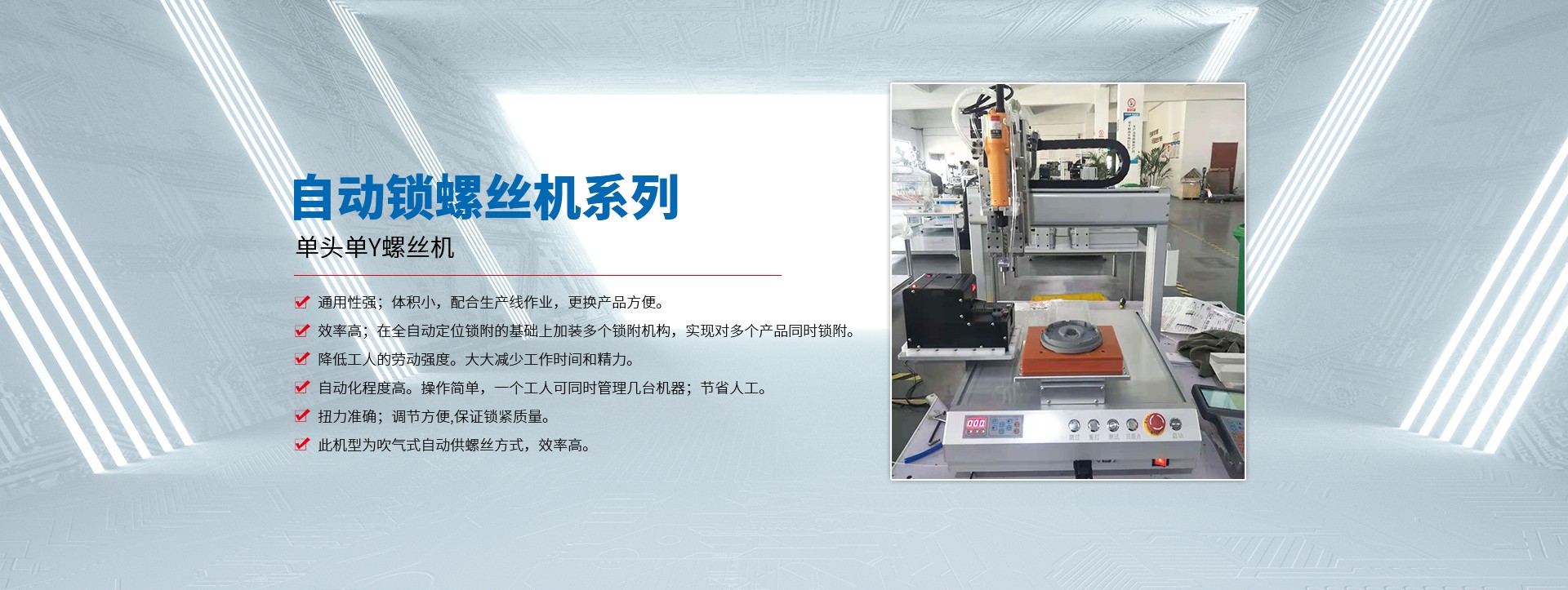 蘇州拓航機械設備有限公司成立于2016年,是一家集研發、制造、銷售及技術服務于一體的自動化設備生產廠家,主營產品有自動螺絲機、自動焊錫機、自動點膠機、自動灌膠機 脈沖熱壓機,及各類型的非標自動化設備。